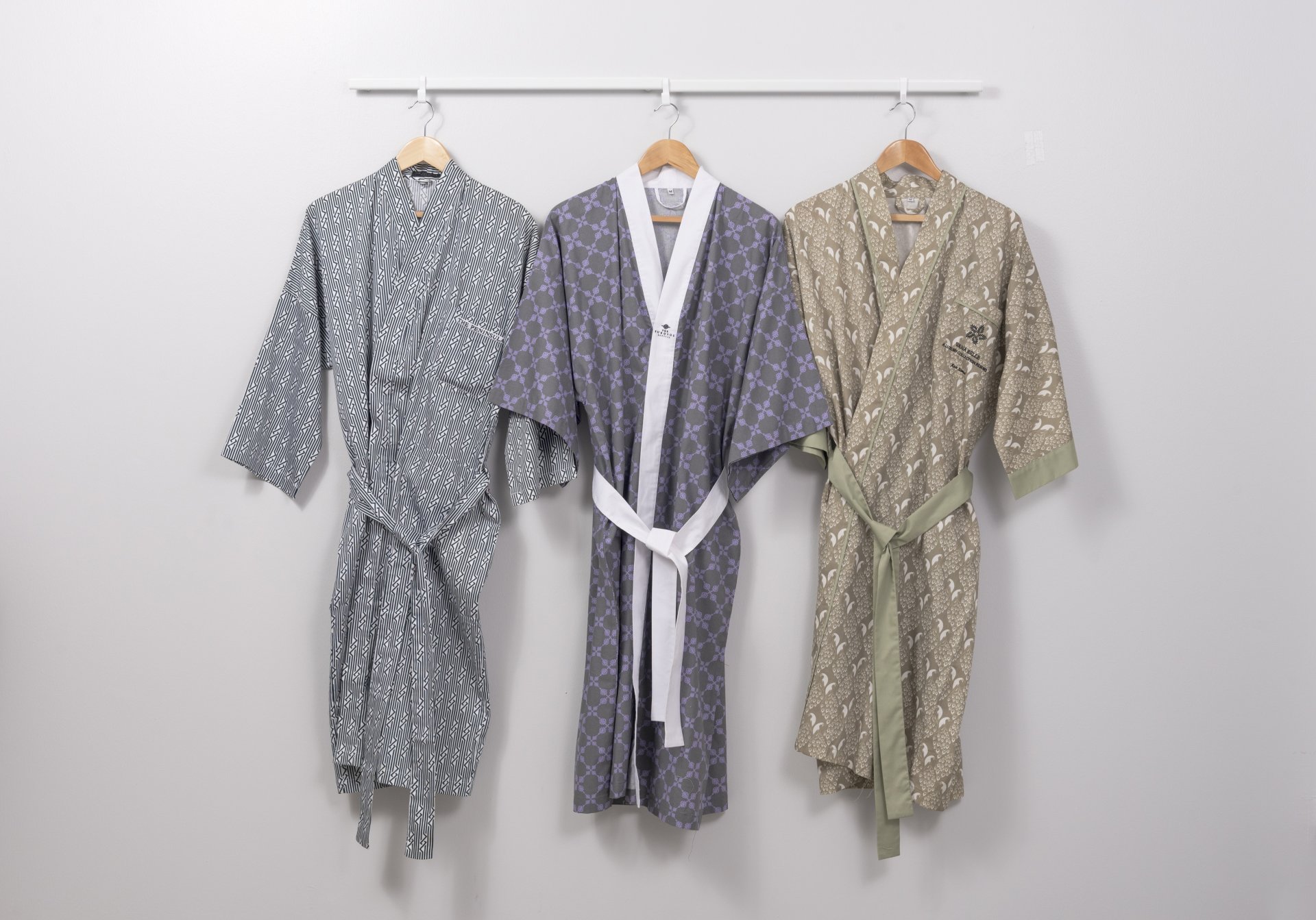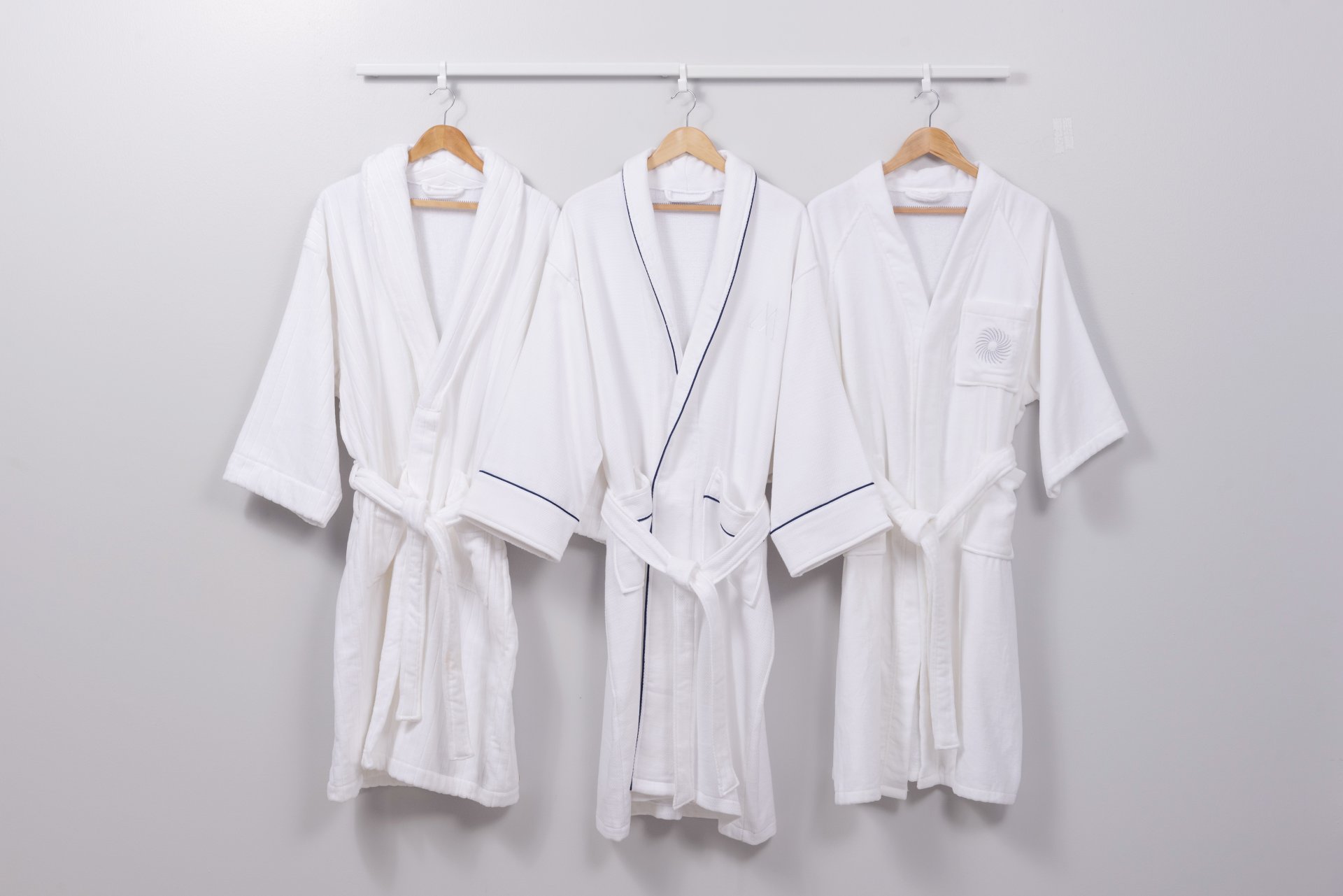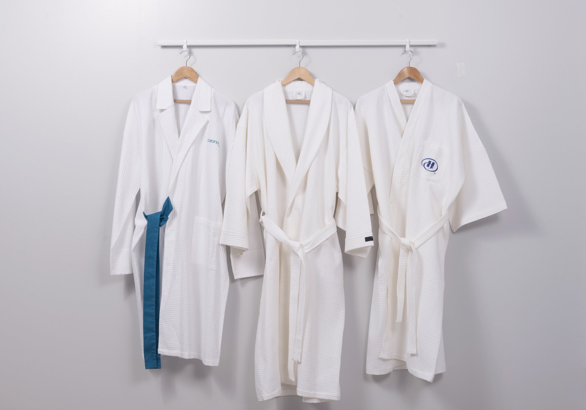 Bathrobes for hotel guests are highly absorbent with beautiful pattern and stylish design reflecting the identity of the hotel. Hotel guests can use them in the room, at the swimming pool, or on the beach. They are also available as the souvenir from the hotel.